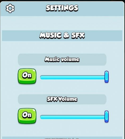 Go to Game Settings and scroll to the Music & SFX section. You can tap the ON/OFF buttons to mute sounds or use the sliders to adjust volume levels.